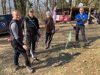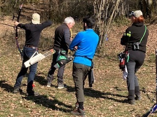 Franc succès pour ce deuxième stage de tir campagne qui s'est déroulé sur le site du Suellet à Challes Les Eaux. 17 archers sur 21 prévus (4 excusés) de tous niveaux, du débutant au champion de France, étaient présents. Certains passionnés n'ont pas hésité à venir de loin (Bourg St Maurice, Eybens, Monestier,...) pour participer à ce stage. Au programme: réglage du matériel, mini formation aux règles d'arbitrage, échauffement, entraînements sur cible et pour terminer cette belle journée, mise en situation avec un mini parcours de 7 cibles tiré 2 fois (en distance inconnue la 1ère fois puis en distance connue pour la 2ème). RDV le 02 avril pour le prochain stage sur le même site.